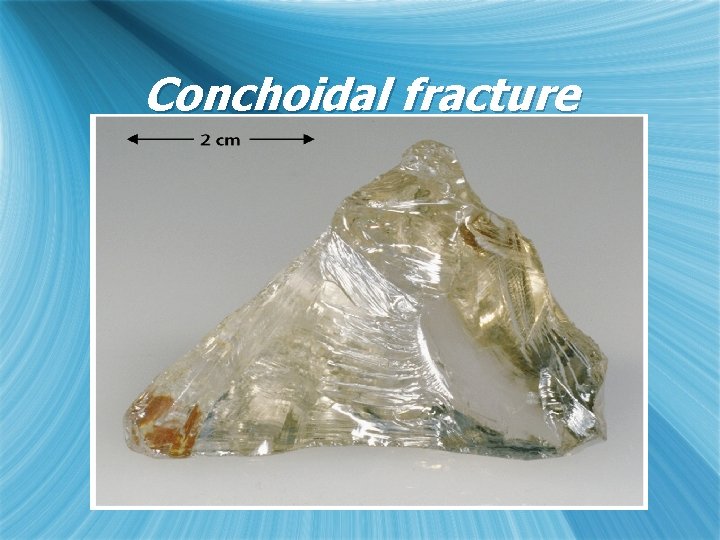 Minerals Building Blocks Of Rocks Chapter 5 Minerals from slidetodoc.com Such a curving fracture surface is characteristic of glass and other brittle materials with no crystal structure. 1666, in the meaning defined above. A fracture with smooth, curved surfaces, typically slightly concave, showing concentric undulations resembling the lines of growth of a shell. History and etymology for conchoidal. Measure whether and how ads were delivered to and interacted with by a user. Conchoidal fracture conchoidal fracture describes the way that brittle materials break when they do not follow any natural planes of separation. In percussion flaking with a hammer, the energy absorbed in the fracture process is small. Source for information conchoidal fracture. a dictionary of earth sciences.